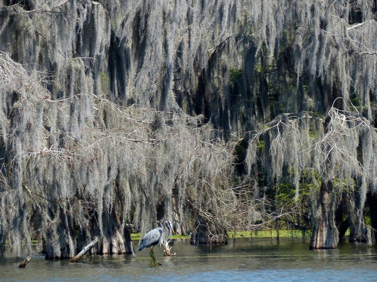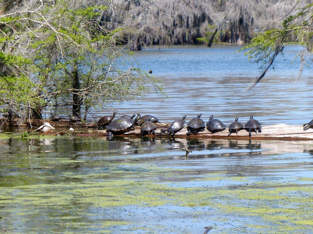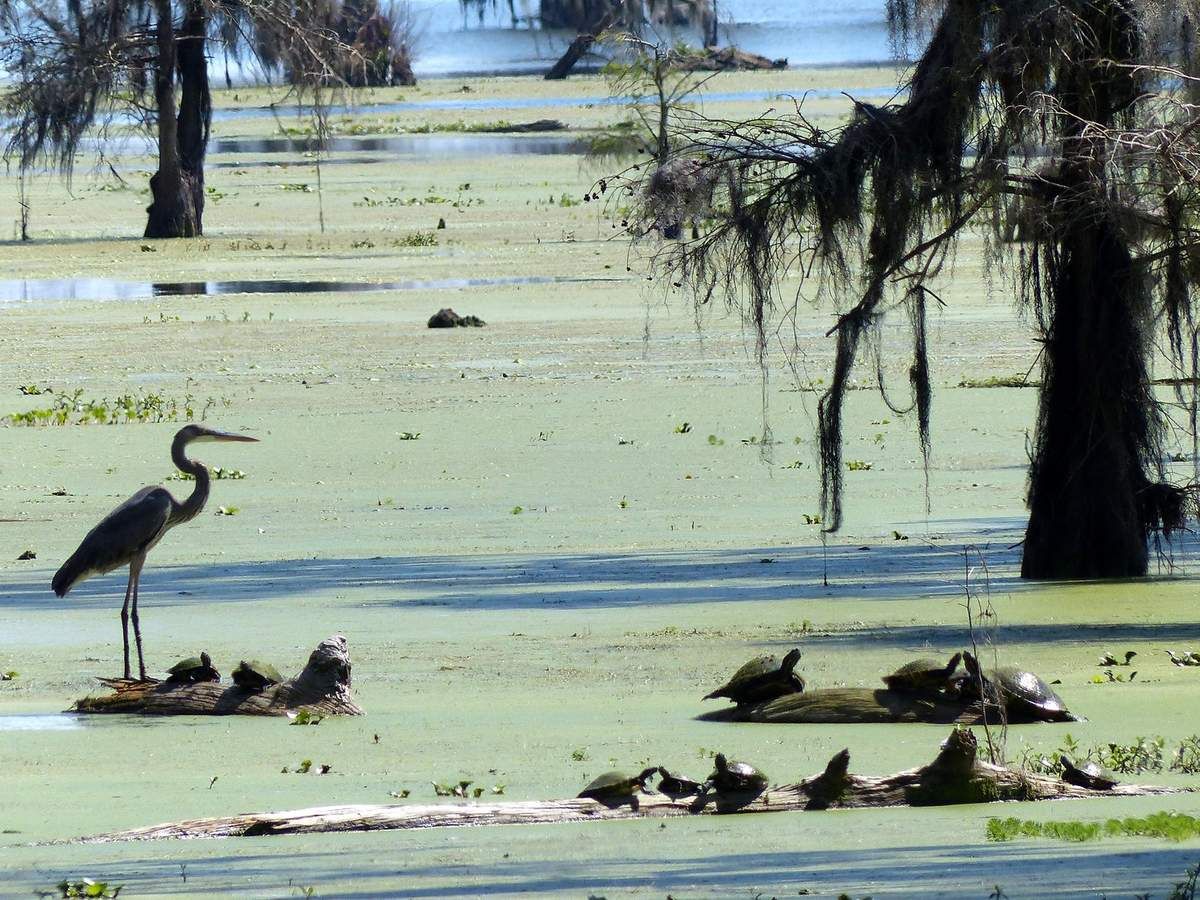 immersion totale en pays cajun, Norbert parle français et nous abreuve d’anecdotes ; nous découvrons un grand nombre de tortues, d’alligators, de hérons de toutes tailles et de toutes les couleurs, des ospreys (aigles pêcheurs) ; superbe promenade, avec un couple de bordelais.