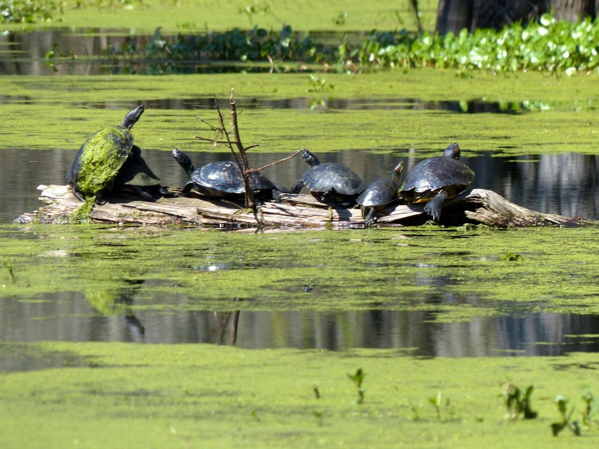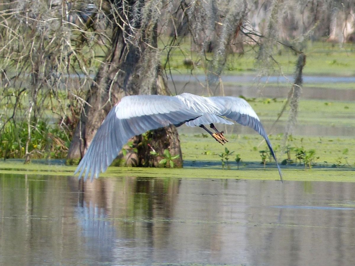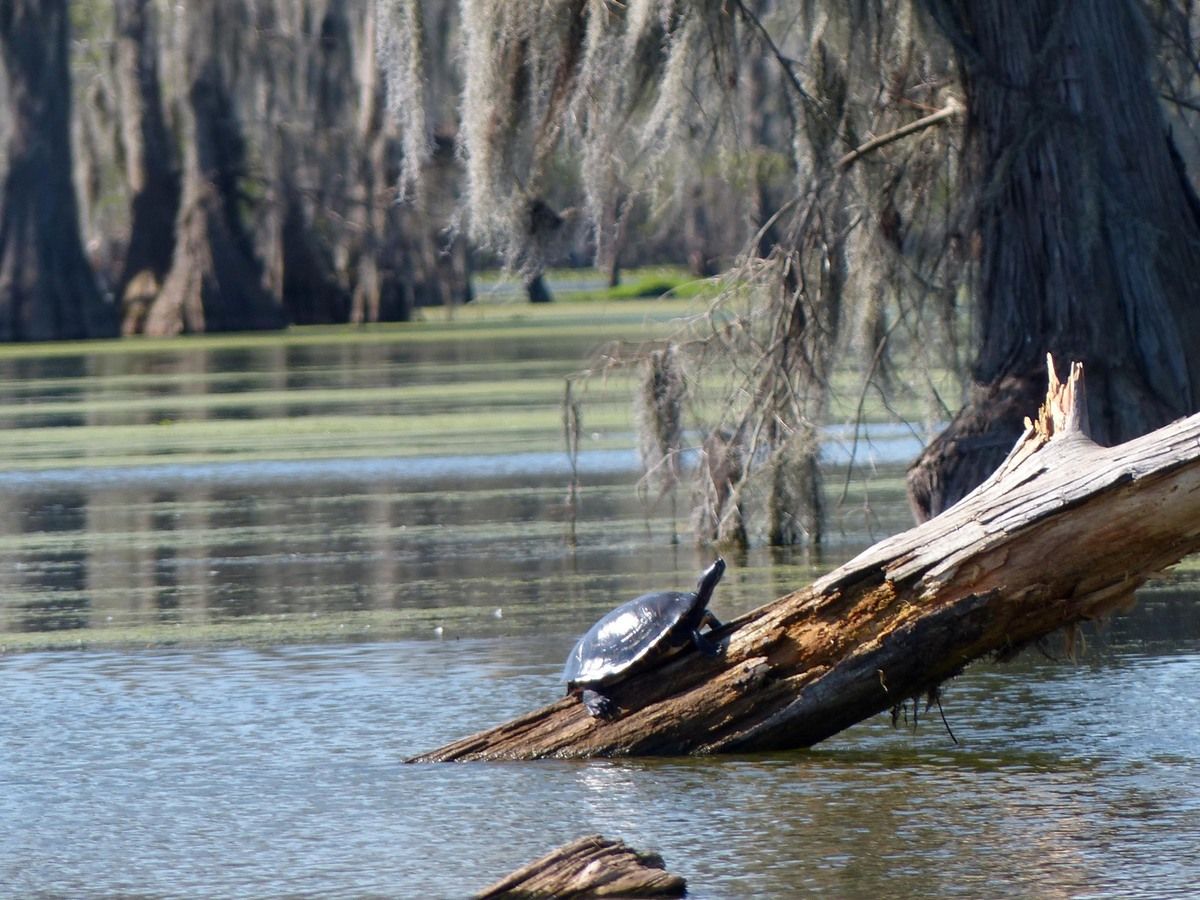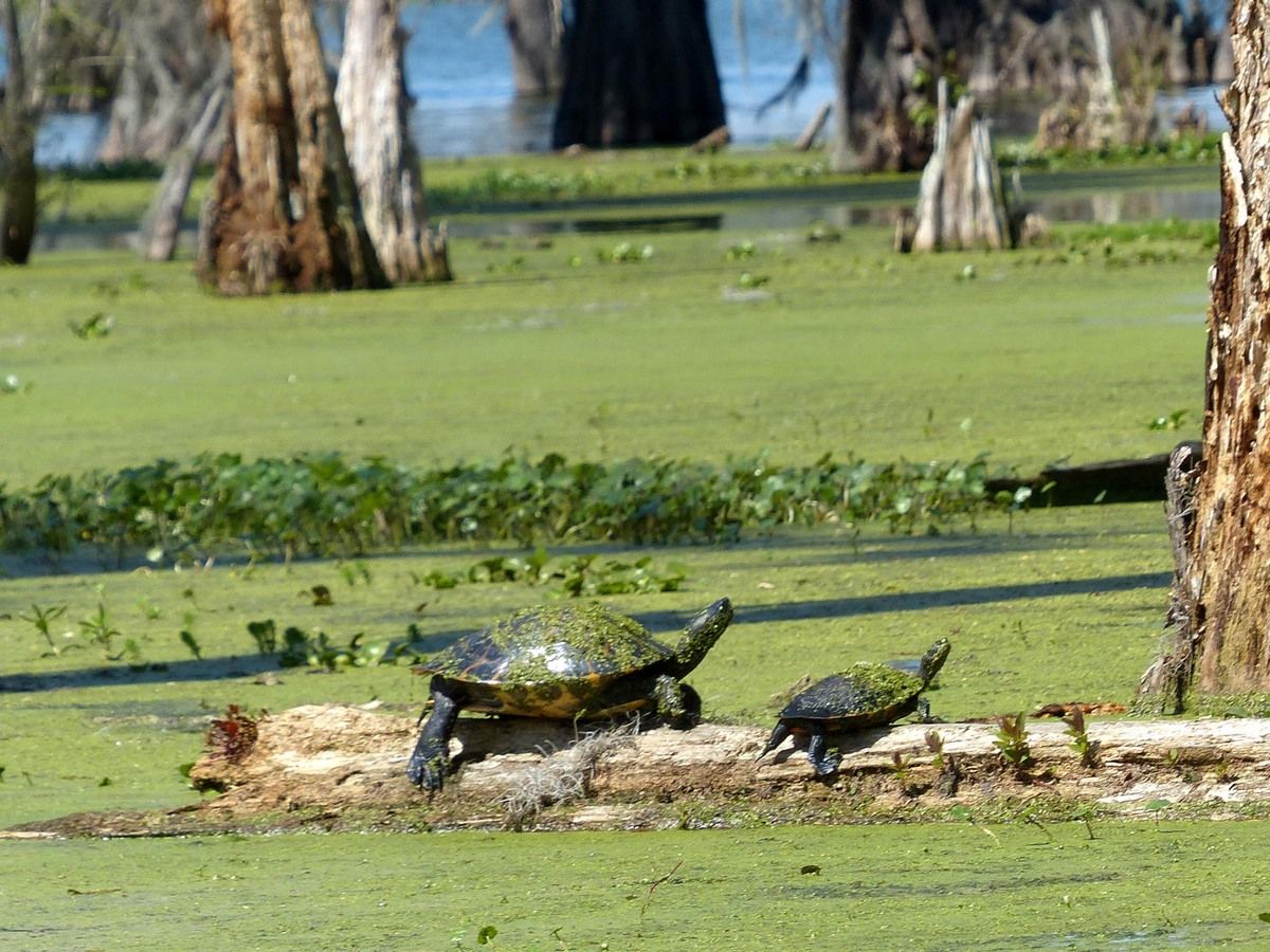 immersion totale en pays cajun, Norbert parle français et nous abreuve d’anecdotes ; nous découvrons un grand nombre de tortues, d’alligators, de hérons de toutes tailles et de toutes les couleurs, des ospreys (aigles pêcheurs) ; superbe promenade, avec un couple de bordelais.