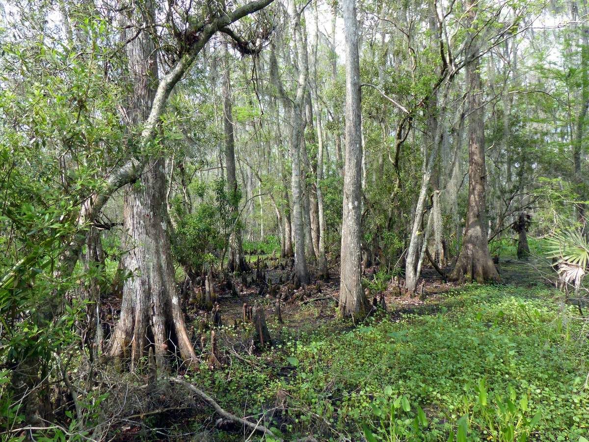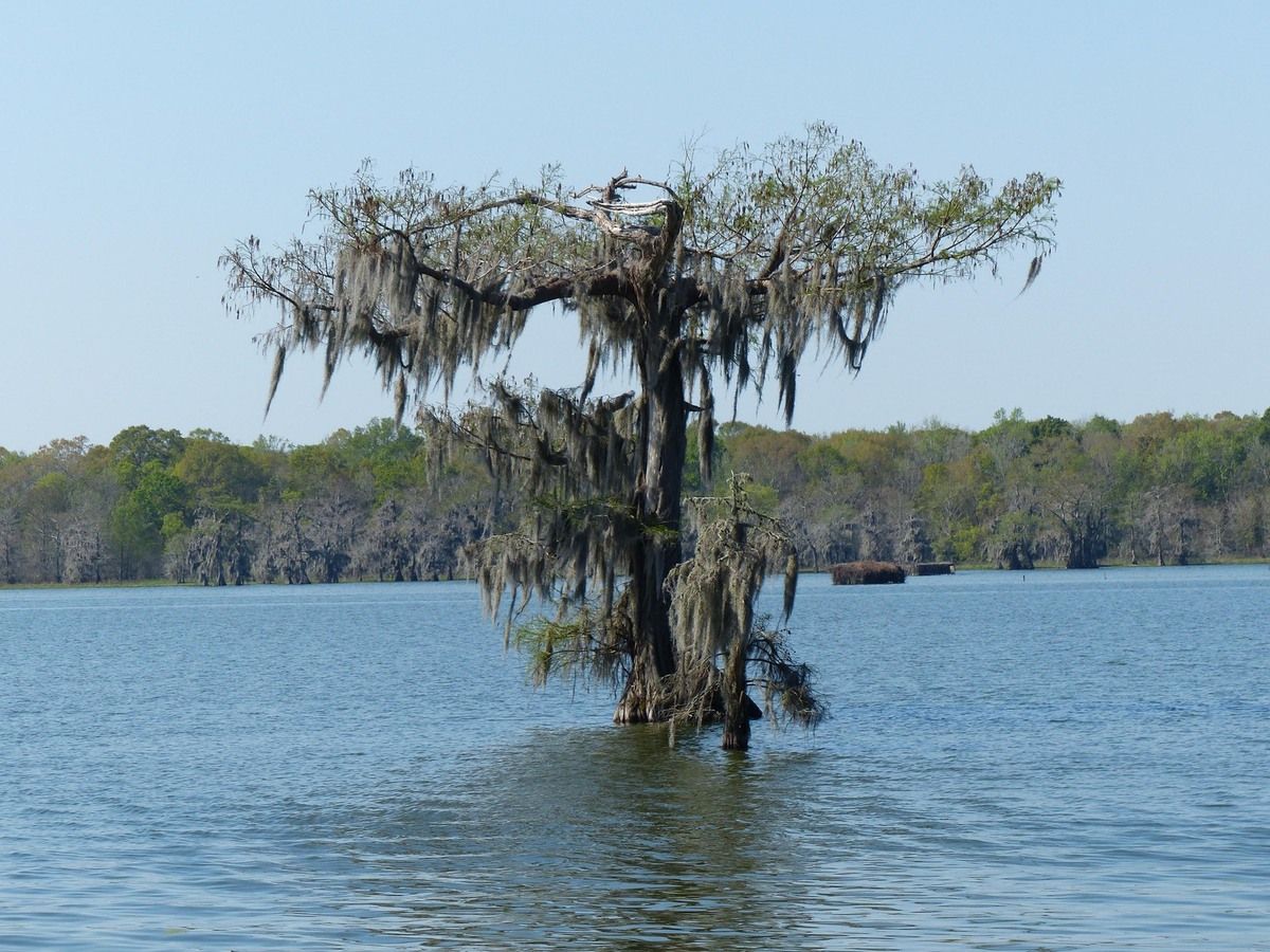 Dés l’entrée, nous pouvons admirer de magnifiques arbres émergeant de l’eau, des cyprès pour la plupart.