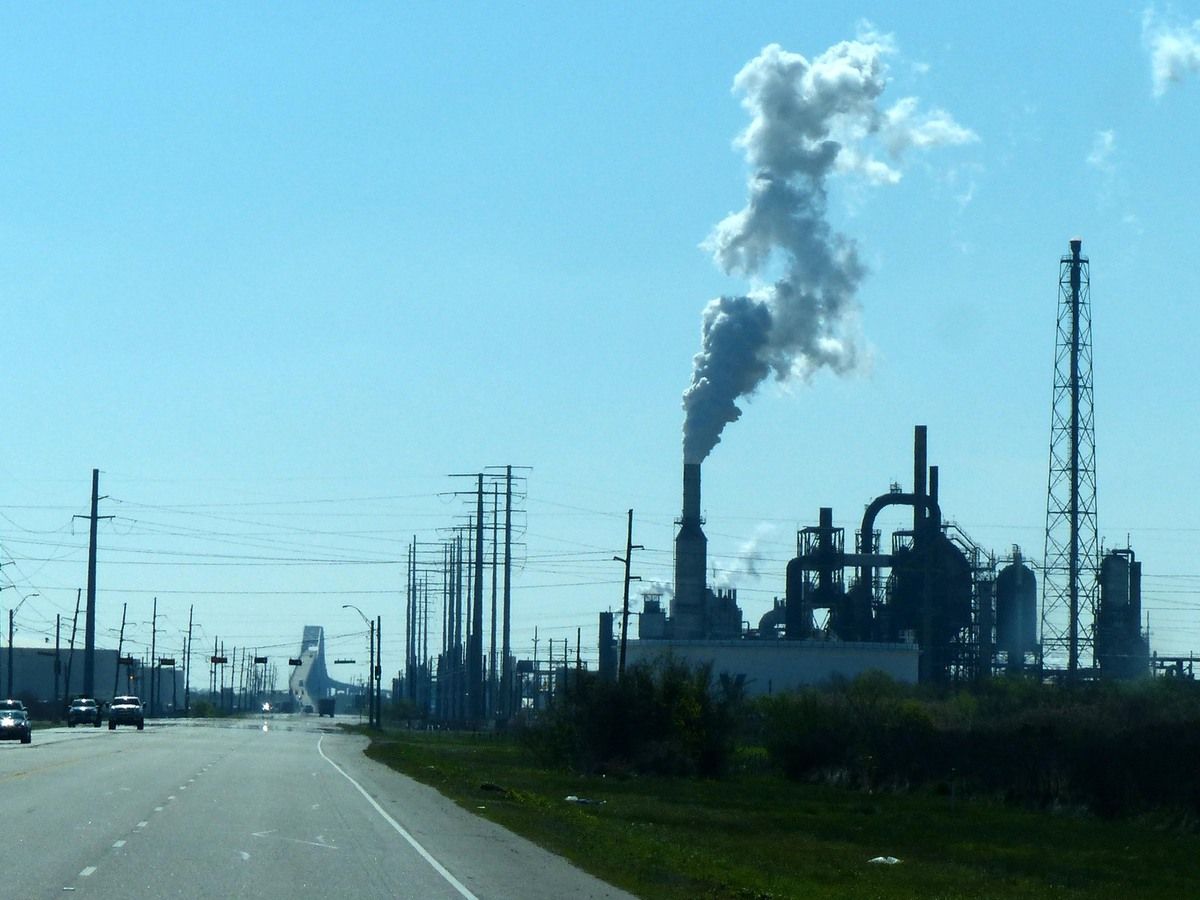 Dans ce secteur, on extrait du pétrole ; puis, nous quittons momentanément la côte ; Port Arthur : très industriel (pétrole et ses dérivés) ; un grand et haut pont enjambe la baie : superbe vue sur Sabine Lake à gauche, et vue très laide sur l’immense complexe pétrolier !