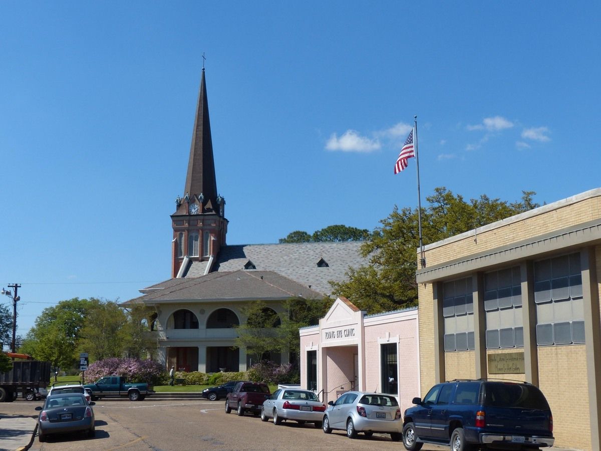 à l’Office du Tourisme, nous faisons provision de docs en tous genres et visitons l’expo sur l’histoire d’Abbeville et des Cajuns ; puis, nous visitons les bâtiments qui entourent cette Place, dont l’église, en briques rouges, et son orgue monumental.