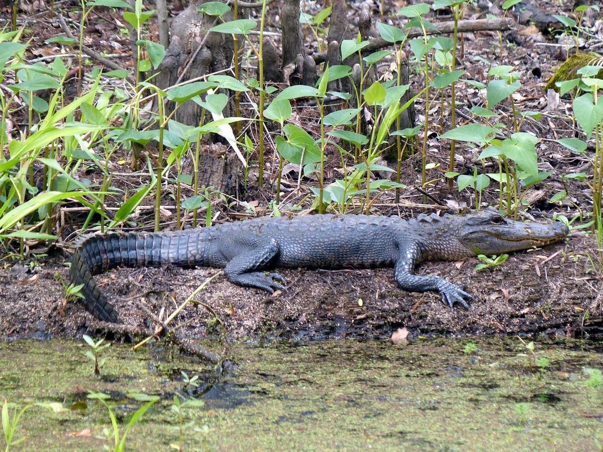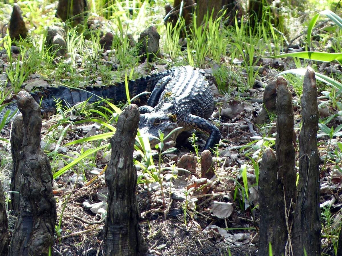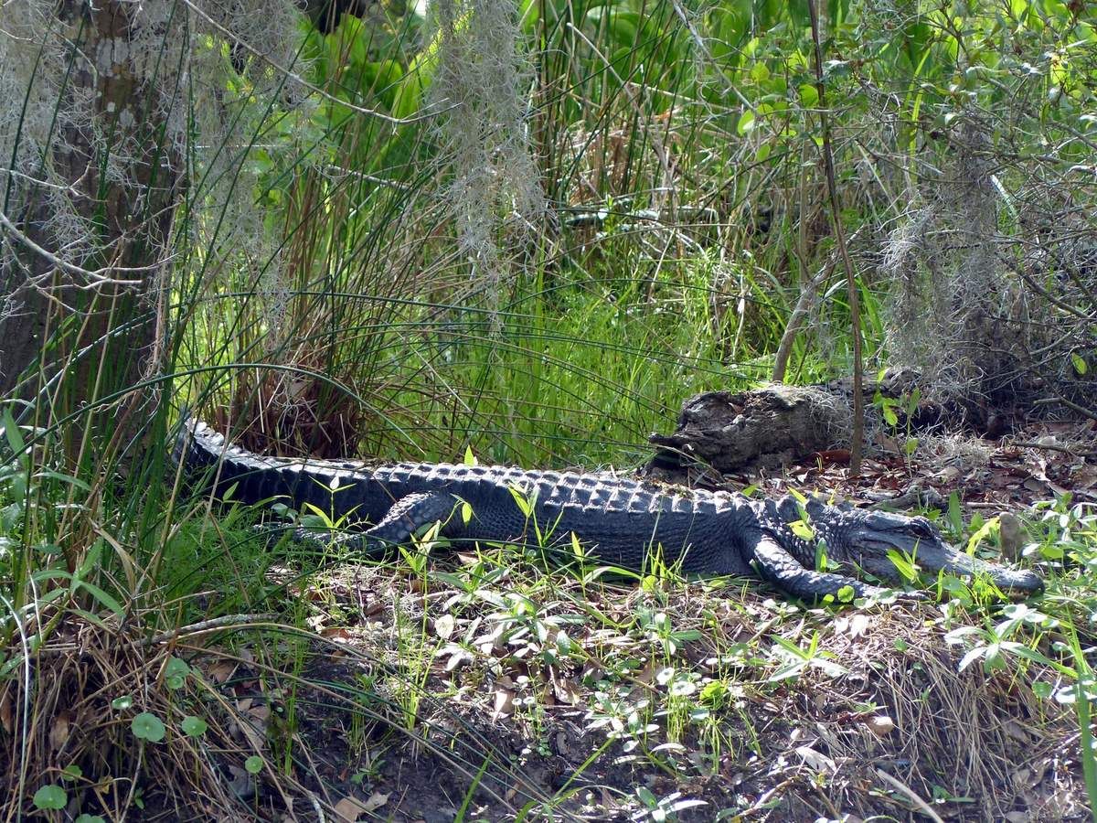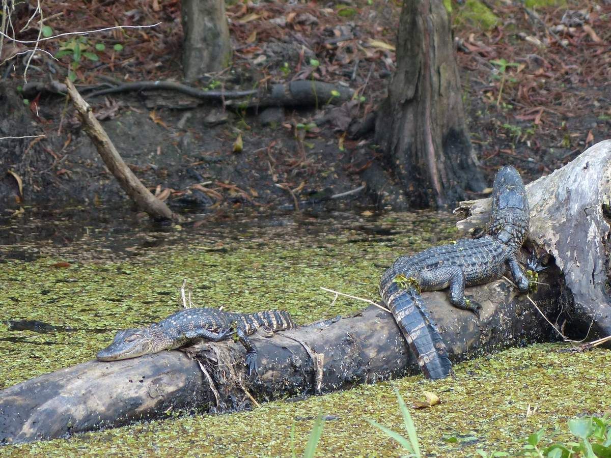 longue promenade sur une passerelle qui surplombe les bayous ; alligators (petits), écureuils, lézards, jolis paysages ; quelques petites averses.